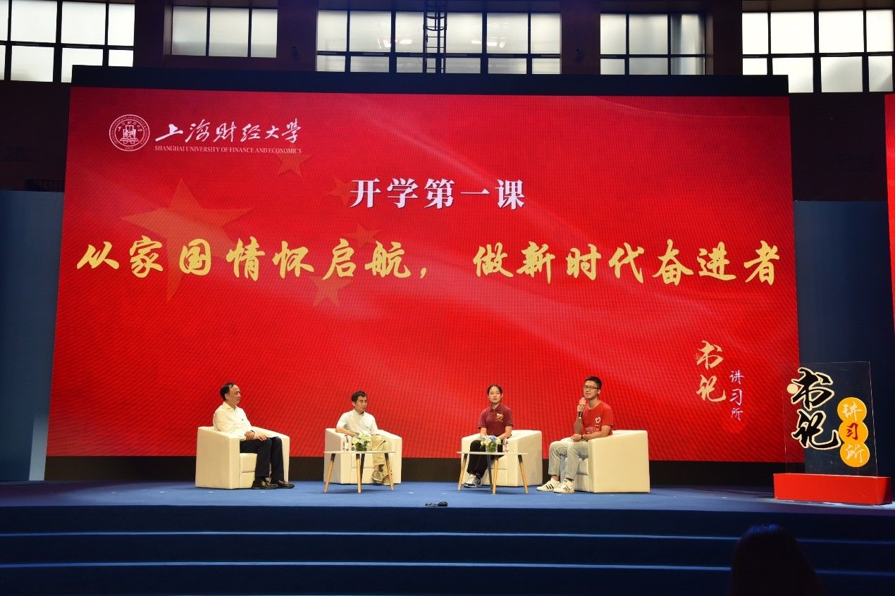 全校学生开学典礼上,陆品燕教授与校党委书记一起上第一堂思政课